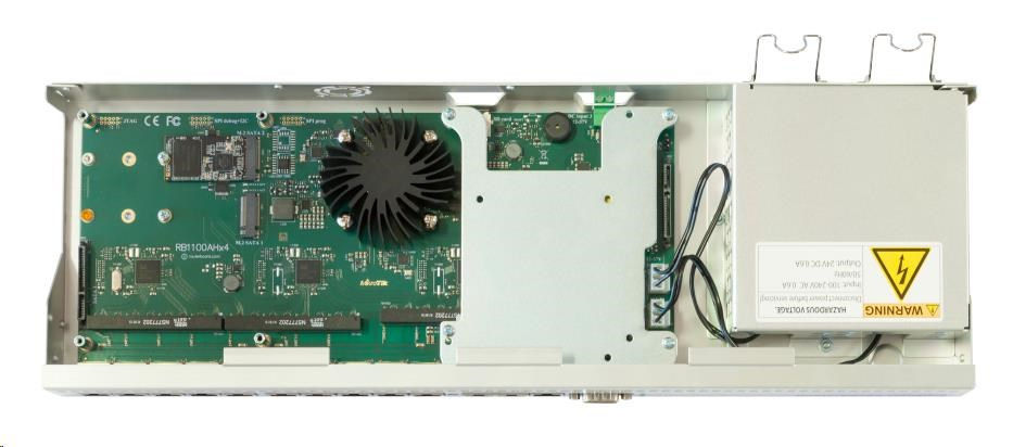 Balenie obsahuje: RB1100AHx4 v hliníkovom kryte do 1U, integrovaný napájací zdroj, napájací kábel, všetko je zmontované a pripravené na okamžité nasadenie.