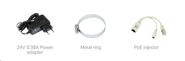 Balenie obsahuje SXTsq 5 ac, injektor PoE, napájací zdroj, montážnu sadu na stožiar