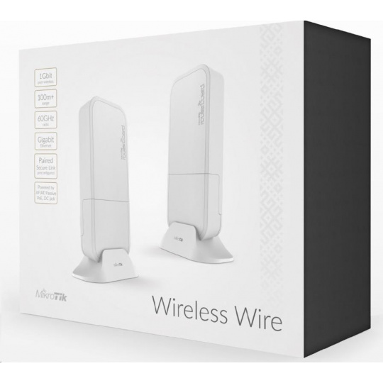 RBwAPG-60ad je revolučnou novinkou v sortimente MikroTik, ktorá zaujme každého, kto buduje spoje na krátke vzdialenosti. RBwAPG-60ad je kompletné bezlicenčné spojenie v pásme 60 GHz, ktoré pracuje so štandardom 802.11ad, ktorý v reálnej prevádzke umožňuje priepustnosť až 1000 Mb/s Full Duplex na vzdialenosť do 100 m. RouterBoard je ako vždy vybavený veľmi obľúbeným operačným systémom RouterOS s licenciou L3. Ak chcete upgradovať jednu z jednotiek na prístupový bod, stačí si zakúpiť licenciu L4.