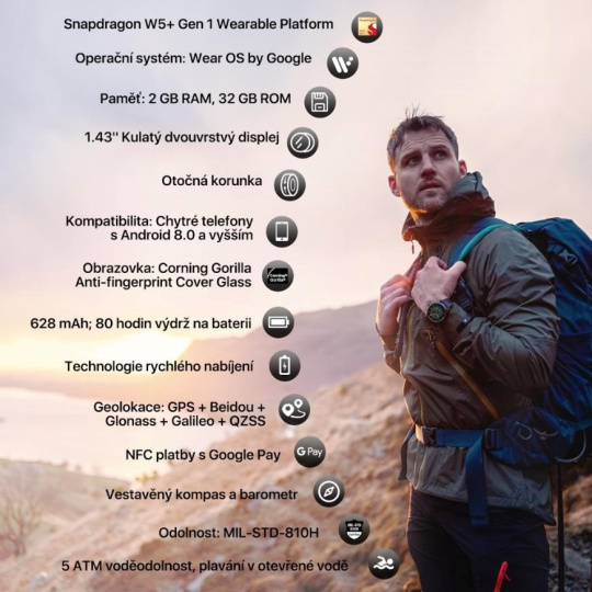 Chytré hodinky TicWatch Pro 5 ako prvé na svete používajú platformu Snapdragon W5 Gen 1. Prechod z 12nm na 4nm proces znamená nielen dvojnásobné navýšenie výkonu, o 30% menšiu veľkosť čipu, ale aj dokonca o polovicu nižšiu spotrebu. V kombinácii s odolným prevedením, ktoré spĺňa vojenskú certifikáciu MIL-STD-810H, a s naozaj bohatou výbavou, ktorá zahŕňa podporu BT 5.2, WiFi, NFC, široký rad geolokačných služieb, veľké množstvo najrôznejších senzorov a obrovskú batériu, Vám tento model ponúkne všetko, čo pre Vaše dobrodružstvo môžete potrebovať.