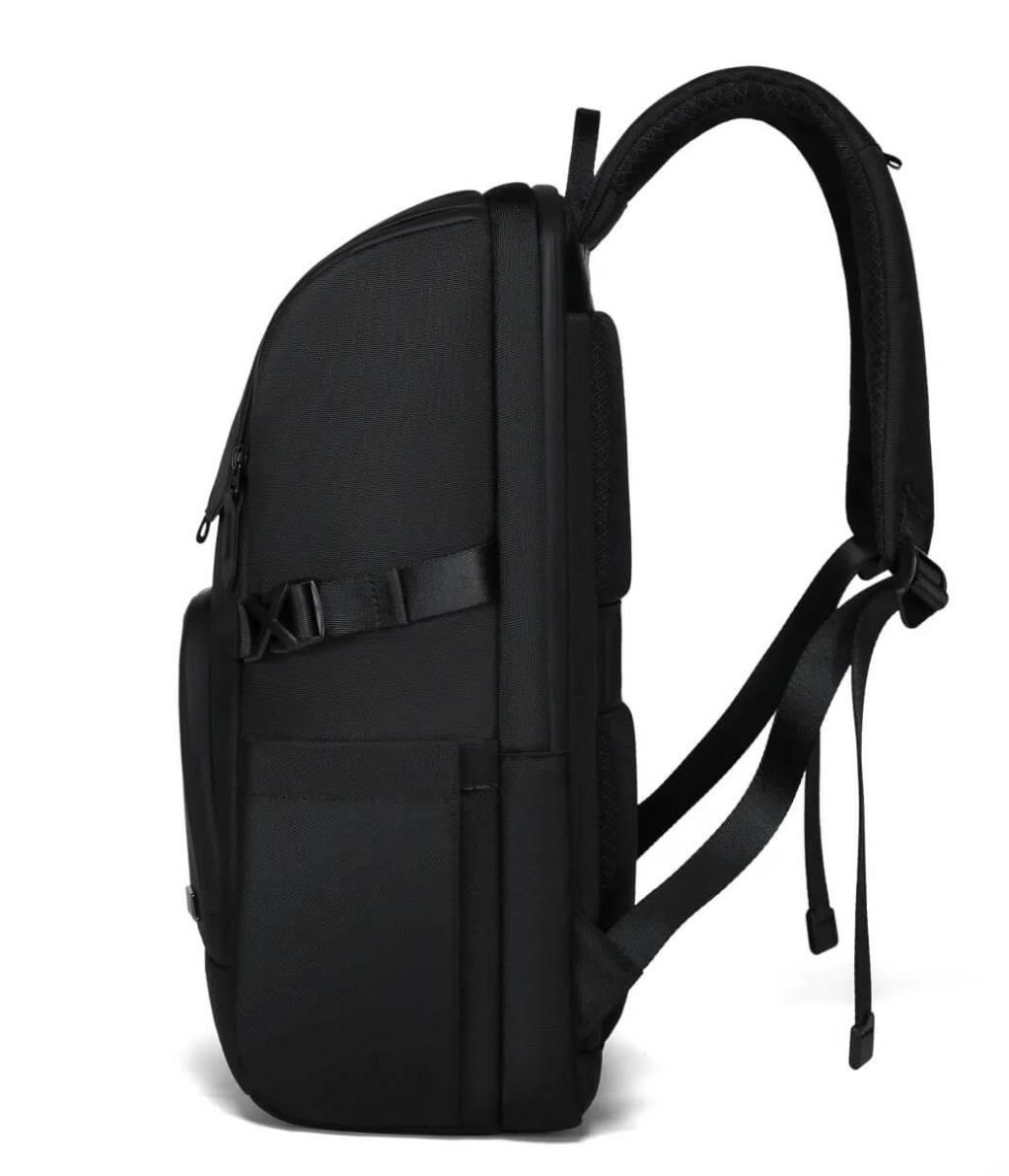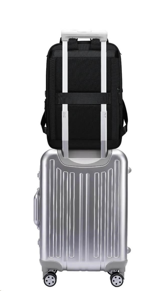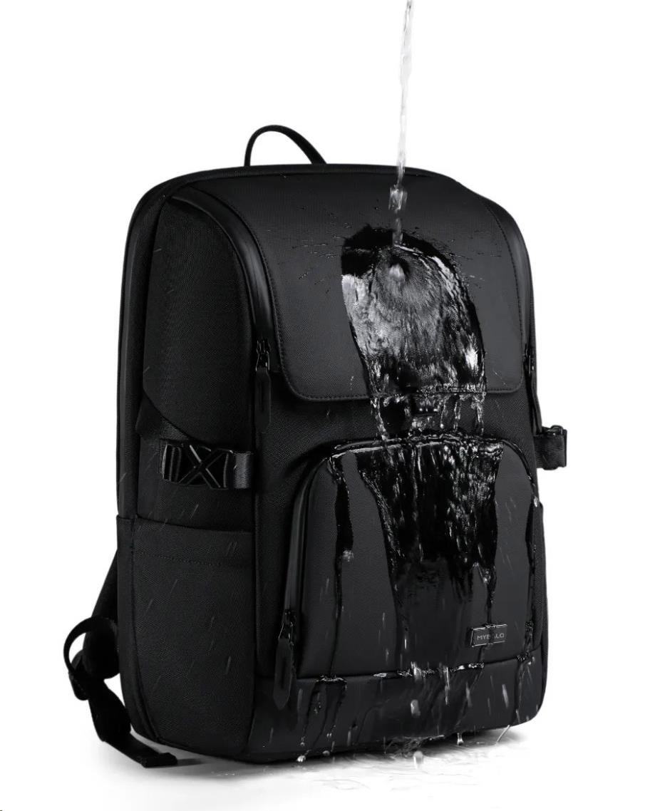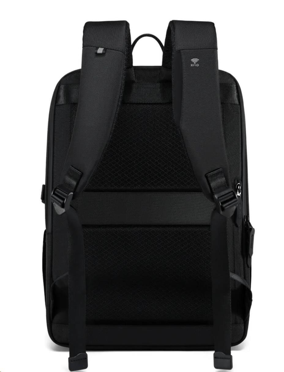 MYBALO ASTON Perfektní volba pro minimalisty s dobrým vkusem  6 ikon: - Nejtenčí batoh - Elegantní - Kapsa na notebook do 15,6" - Kapsa na tablet do 9" - Otevírání o 180 stupňů - USB a USB-C port - Drží tvar - Voděodolný - Skryté kapsy  Elegantní a minimalistický Jedná se o velmi elegantní a minimalistický batoh. S tímto parťákem neuděláte chybu při běžném nošení do města, ani na důležité schůzce.  Tenký batoh MYBALO Aston je batoh s vůbec nejmenší hloubkou z naší nabídky. Díky tomu působí elegantně a minimalisticky, ale i přesto se do něj vejdou všechny vaše nezbytnosti.  Kvalitní voděodolný materiál, dlouhá životnost Kvalitní umělá kůže zajišťuje trvanlivost a odolnost batohu proti vodě a opotřebení. MYBALO Aston tak bude vaším společníkem opravdu dlouho.  Drží tvar Batoh si zachovává svůj tvar také v případě, že jej budete mít úplně prázdný.  Vestavěný USB a USB-C port Nabíjejte svá elektronická zařízení kdekoli a kdykoli díky vestavěnému USB a USB-C portu.  Popruh k uchycení na kufr Cestujte pohodlně. Kdykoli chcete mít volná záda, jednoduše připevněte batoh na rukojeť svého kufru.  Pohodlné polstrování Užijte si komfortní nošení díky kvalitnímu a prodyšnému polstrování ramenních popruhů a zádové části.  Další praktické kapsy Zorganizujte si pohodlně a snadno své věci díky množství vychytaných kapes.  Skryté kapsy V zádové části a na ramenním popruhu najdete skryté kapsy pro bezpečné uložení cenností.  Vnitřní kapsy Vnitřní kapsy slouží pro snadnou organizaci všech vašich věcí.  Přední kapsa Přední kapsa je určena pro věci, které chcete mít rychle a snadno po ruce.  Parametry: - Rozměry: 46 x 30 x 9 cm - Objem: 11 l - Hmotnost: 1,19 kg - Kapsa na notebook: Ano (do vel. 15,6") - Kapsa na tablet: Ano (do vel. 9") - USB port: Ano - Voděodolnost: Ano - Hlavní materiál: Ekokůže + Polyester - Podšívka: Polyester - Barva: Černá