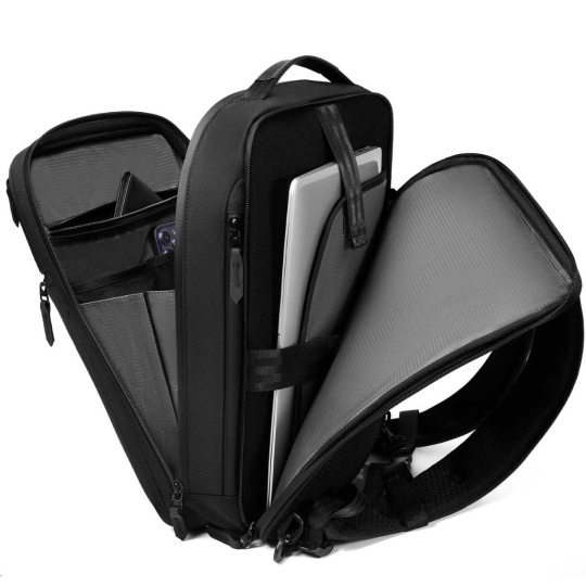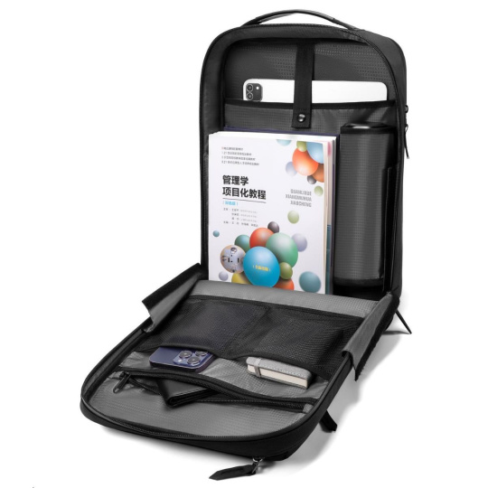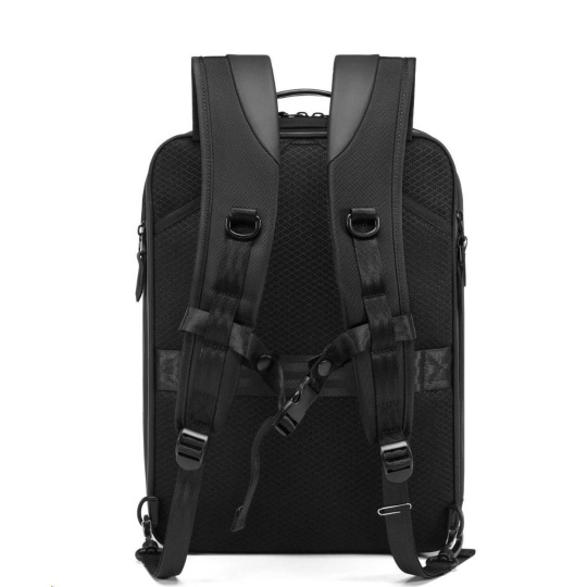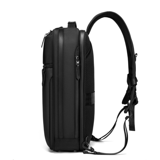 MYBALO ASTON Perfektní volba pro minimalisty s dobrým vkusem 6 ikon: - Nejtenčí batoh - Elegantní - Kapsa na notebook do 15,6" - Kapsa na tablet do 9" - Otevírání o 180 stupňů - USB a USB-C port - Drží tvar - Voděodolný - Skryté kapsy Elegantní a minimalistický Jedná se o velmi elegantní a minimalistický batoh. S tímto parťákem neuděláte chybu při běžném nošení do města, ani na důležité schůzce. Tenký batoh MYBALO Aston je batoh s vůbec nejmenší hloubkou z naší nabídky. Díky tomu působí elegantně a minimalisticky, ale i přesto se do něj vejdou všechny vaše nezbytnosti. Kvalitní voděodolný materiál, dlouhá životnost Kvalitní umělá kůže zajišťuje trvanlivost a odolnost batohu proti vodě a opotřebení. MYBALO Aston tak bude vaším společníkem opravdu dlouho. Drží tvar Batoh si zachovává svůj tvar také v případě, že jej budete mít úplně prázdný. Vestavěný USB a USB-C port Nabíjejte svá elektronická zařízení kdekoli a kdykoli díky vestavěnému USB a USB-C portu. Popruh k uchycení na kufr Cestujte pohodlně. Kdykoli chcete mít volná záda, jednoduše připevněte batoh na rukojeť svého kufru. Pohodlné polstrování Užijte si komfortní nošení díky kvalitnímu a prodyšnému polstrování ramenních popruhů a zádové části. Další praktické kapsy Zorganizujte si pohodlně a snadno své věci díky množství vychytaných kapes. Skryté kapsy V zádové části a na ramenním popruhu najdete skryté kapsy pro bezpečné uložení cenností. Vnitřní kapsy Vnitřní kapsy slouží pro snadnou organizaci všech vašich věcí. Přední kapsa Přední kapsa je určena pro věci, které chcete mít rychle a snadno po ruce. Parametry: - Rozměry: 46 x 30 x 9 cm - Objem: 11 l - Hmotnost: 1,19 kg - Kapsa na notebook: Ano (do vel. 15,6") - Kapsa na tablet: Ano (do vel. 9") - USB port: Ano - Voděodolnost: Ano - Hlavní materiál: Ekokůže + Polyester - Podšívka: Polyester - Barva: Černá.