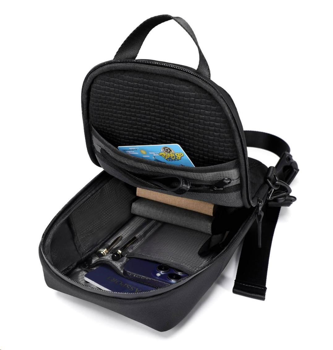 MYBALO ASTON Perfektní volba pro minimalisty s dobrým vkusem 6 ikon: - Nejtenčí batoh - Elegantní - Kapsa na notebook do 15,6" - Kapsa na tablet do 9" - Otevírání o 180 stupňů - USB a USB-C port - Drží tvar - Voděodolný - Skryté kapsy Elegantní a minimalistický Jedná se o velmi elegantní a minimalistický batoh. S tímto parťákem neuděláte chybu při běžném nošení do města, ani na důležité schůzce. Tenký batoh MYBALO Aston je batoh s vůbec nejmenší hloubkou z naší nabídky. Díky tomu působí elegantně a minimalisticky, ale i přesto se do něj vejdou všechny vaše nezbytnosti. Kvalitní voděodolný materiál, dlouhá životnost Kvalitní umělá kůže zajišťuje trvanlivost a odolnost batohu proti vodě a opotřebení. MYBALO Aston tak bude vaším společníkem opravdu dlouho. Drží tvar Batoh si zachovává svůj tvar také v případě, že jej budete mít úplně prázdný. Vestavěný USB a USB-C port Nabíjejte svá elektronická zařízení kdekoli a kdykoli díky vestavěnému USB a USB-C portu. Popruh k uchycení na kufr Cestujte pohodlně. Kdykoli chcete mít volná záda, jednoduše připevněte batoh na rukojeť svého kufru. Pohodlné polstrování Užijte si komfortní nošení díky kvalitnímu a prodyšnému polstrování ramenních popruhů a zádové části. Další praktické kapsy Zorganizujte si pohodlně a snadno své věci díky množství vychytaných kapes. Skryté kapsy V zádové části a na ramenním popruhu najdete skryté kapsy pro bezpečné uložení cenností. Vnitřní kapsy Vnitřní kapsy slouží pro snadnou organizaci všech vašich věcí. Přední kapsa Přední kapsa je určena pro věci, které chcete mít rychle a snadno po ruce. Parametry: - Rozměry: 46 x 30 x 9 cm - Objem: 11 l - Hmotnost: 1,19 kg - Kapsa na notebook: Ano (do vel. 15,6") - Kapsa na tablet: Ano (do vel. 9") - USB port: Ano - Voděodolnost: Ano - Hlavní materiál: Ekokůže + Polyester - Podšívka: Polyester - Barva: Černá.
