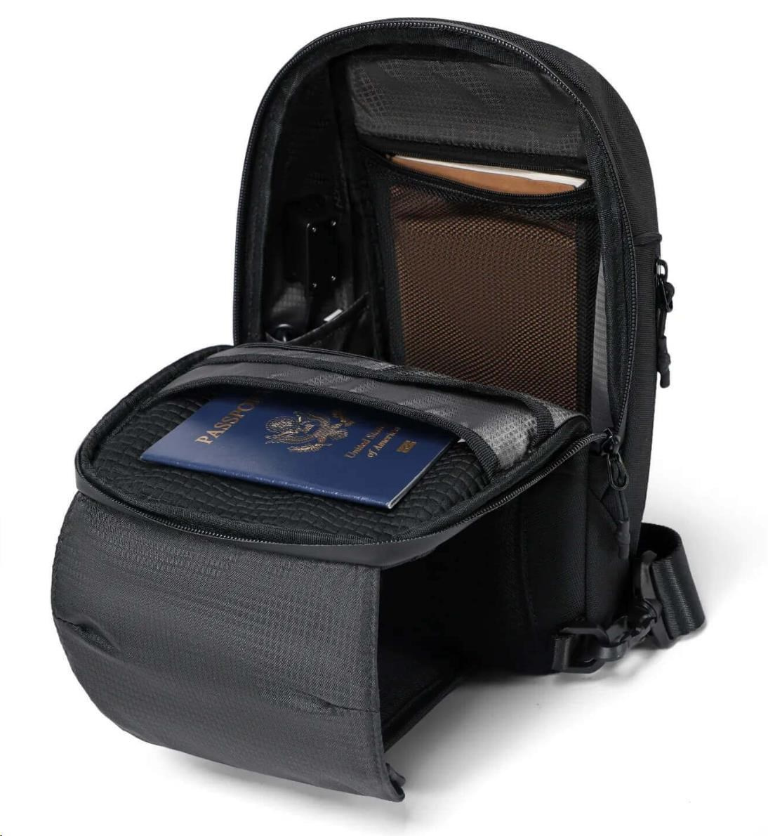 MYBALO ASTON Perfektní volba pro minimalisty s dobrým vkusem 6 ikon: - Nejtenčí batoh - Elegantní - Kapsa na notebook do 15,6" - Kapsa na tablet do 9" - Otevírání o 180 stupňů - USB a USB-C port - Drží tvar - Voděodolný - Skryté kapsy Elegantní a minimalistický Jedná se o velmi elegantní a minimalistický batoh. S tímto parťákem neuděláte chybu při běžném nošení do města, ani na důležité schůzce. Tenký batoh MYBALO Aston je batoh s vůbec nejmenší hloubkou z naší nabídky. Díky tomu působí elegantně a minimalisticky, ale i přesto se do něj vejdou všechny vaše nezbytnosti. Kvalitní voděodolný materiál, dlouhá životnost Kvalitní umělá kůže zajišťuje trvanlivost a odolnost batohu proti vodě a opotřebení. MYBALO Aston tak bude vaším společníkem opravdu dlouho. Drží tvar Batoh si zachovává svůj tvar také v případě, že jej budete mít úplně prázdný. Vestavěný USB a USB-C port Nabíjejte svá elektronická zařízení kdekoli a kdykoli díky vestavěnému USB a USB-C portu. Popruh k uchycení na kufr Cestujte pohodlně. Kdykoli chcete mít volná záda, jednoduše připevněte batoh na rukojeť svého kufru. Pohodlné polstrování Užijte si komfortní nošení díky kvalitnímu a prodyšnému polstrování ramenních popruhů a zádové části. Další praktické kapsy Zorganizujte si pohodlně a snadno své věci díky množství vychytaných kapes. Skryté kapsy V zádové části a na ramenním popruhu najdete skryté kapsy pro bezpečné uložení cenností. Vnitřní kapsy Vnitřní kapsy slouží pro snadnou organizaci všech vašich věcí. Přední kapsa Přední kapsa je určena pro věci, které chcete mít rychle a snadno po ruce. Parametry: - Rozměry: 46 x 30 x 9 cm - Objem: 11 l - Hmotnost: 1,19 kg - Kapsa na notebook: Ano (do vel. 15,6") - Kapsa na tablet: Ano (do vel. 9") - USB port: Ano - Voděodolnost: Ano - Hlavní materiál: Ekokůže + Polyester - Podšívka: Polyester - Barva: Černá.