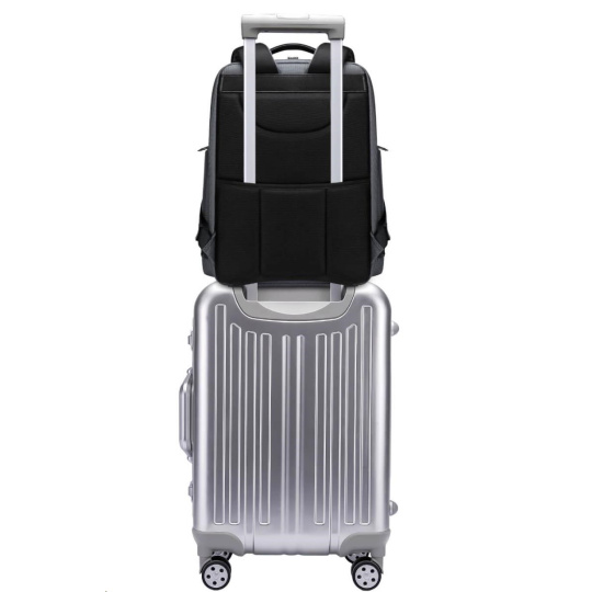 MYBALO ASTON Perfektní volba pro minimalisty s dobrým vkusem 6 ikon: - Nejtenčí batoh - Elegantní - Kapsa na notebook do 15,6" - Kapsa na tablet do 9" - Otevírání o 180 stupňů - USB a USB-C port - Drží tvar - Voděodolný - Skryté kapsy Elegantní a minimalistický Jedná se o velmi elegantní a minimalistický batoh. S tímto parťákem neuděláte chybu při běžném nošení do města, ani na důležité schůzce. Tenký batoh MYBALO Aston je batoh s vůbec nejmenší hloubkou z naší nabídky. Díky tomu působí elegantně a minimalisticky, ale i přesto se do něj vejdou všechny vaše nezbytnosti. Kvalitní voděodolný materiál, dlouhá životnost Kvalitní umělá kůže zajišťuje trvanlivost a odolnost batohu proti vodě a opotřebení. MYBALO Aston tak bude vaším společníkem opravdu dlouho. Drží tvar Batoh si zachovává svůj tvar také v případě, že jej budete mít úplně prázdný. Vestavěný USB a USB-C port Nabíjejte svá elektronická zařízení kdekoli a kdykoli díky vestavěnému USB a USB-C portu. Popruh k uchycení na kufr Cestujte pohodlně. Kdykoli chcete mít volná záda, jednoduše připevněte batoh na rukojeť svého kufru. Pohodlné polstrování Užijte si komfortní nošení díky kvalitnímu a prodyšnému polstrování ramenních popruhů a zádové části. Další praktické kapsy Zorganizujte si pohodlně a snadno své věci díky množství vychytaných kapes. Skryté kapsy V zádové části a na ramenním popruhu najdete skryté kapsy pro bezpečné uložení cenností. Vnitřní kapsy Vnitřní kapsy slouží pro snadnou organizaci všech vašich věcí. Přední kapsa Přední kapsa je určena pro věci, které chcete mít rychle a snadno po ruce. Parametry: - Rozměry: 46 x 30 x 9 cm - Objem: 11 l - Hmotnost: 1,19 kg - Kapsa na notebook: Ano (do vel. 15,6") - Kapsa na tablet: Ano (do vel. 9") - USB port: Ano - Voděodolnost: Ano - Hlavní materiál: Ekokůže + Polyester - Podšívka: Polyester - Barva: Černá.