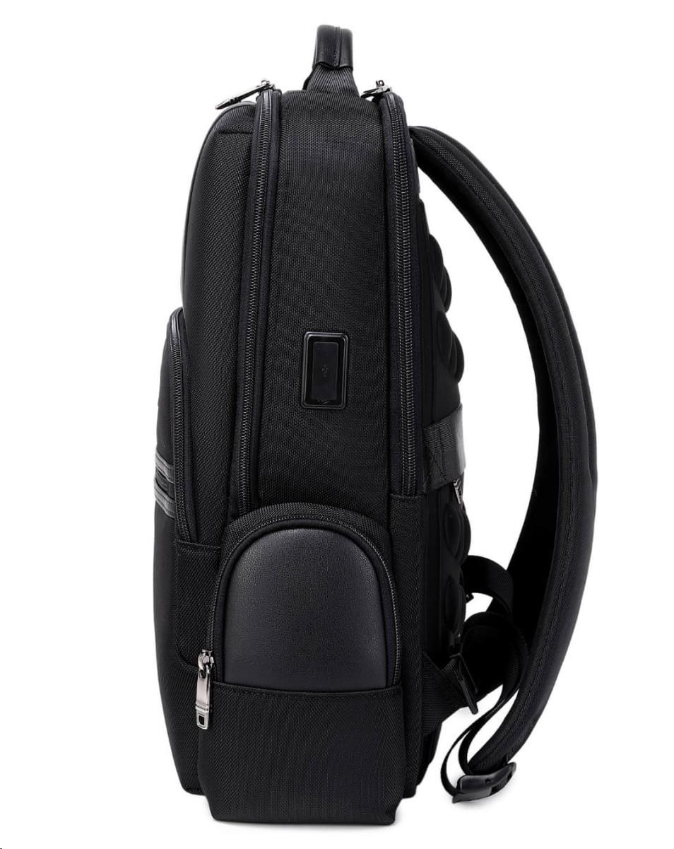 MYBALO ASTON Perfektní volba pro minimalisty s dobrým vkusem 6 ikon: - Nejtenčí batoh - Elegantní - Kapsa na notebook do 15,6" - Kapsa na tablet do 9" - Otevírání o 180 stupňů - USB a USB-C port - Drží tvar - Voděodolný - Skryté kapsy Elegantní a minimalistický Jedná se o velmi elegantní a minimalistický batoh. S tímto parťákem neuděláte chybu při běžném nošení do města, ani na důležité schůzce. Tenký batoh MYBALO Aston je batoh s vůbec nejmenší hloubkou z naší nabídky. Díky tomu působí elegantně a minimalisticky, ale i přesto se do něj vejdou všechny vaše nezbytnosti. Kvalitní voděodolný materiál, dlouhá životnost Kvalitní umělá kůže zajišťuje trvanlivost a odolnost batohu proti vodě a opotřebení. MYBALO Aston tak bude vaším společníkem opravdu dlouho. Drží tvar Batoh si zachovává svůj tvar také v případě, že jej budete mít úplně prázdný. Vestavěný USB a USB-C port Nabíjejte svá elektronická zařízení kdekoli a kdykoli díky vestavěnému USB a USB-C portu. Popruh k uchycení na kufr Cestujte pohodlně. Kdykoli chcete mít volná záda, jednoduše připevněte batoh na rukojeť svého kufru. Pohodlné polstrování Užijte si komfortní nošení díky kvalitnímu a prodyšnému polstrování ramenních popruhů a zádové části. Další praktické kapsy Zorganizujte si pohodlně a snadno své věci díky množství vychytaných kapes. Skryté kapsy V zádové části a na ramenním popruhu najdete skryté kapsy pro bezpečné uložení cenností. Vnitřní kapsy Vnitřní kapsy slouží pro snadnou organizaci všech vašich věcí. Přední kapsa Přední kapsa je určena pro věci, které chcete mít rychle a snadno po ruce. Parametry: - Rozměry: 46 x 30 x 9 cm - Objem: 11 l - Hmotnost: 1,19 kg - Kapsa na notebook: Ano (do vel. 15,6") - Kapsa na tablet: Ano (do vel. 9") - USB port: Ano - Voděodolnost: Ano - Hlavní materiál: Ekokůže + Polyester - Podšívka: Polyester - Barva: Černá.