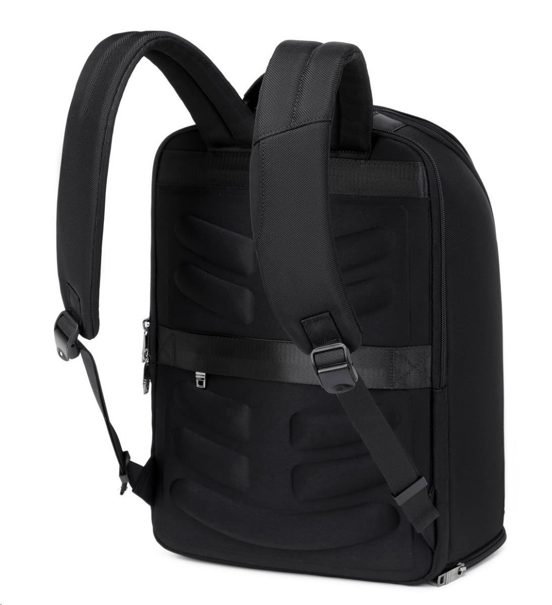 MYBALO ASTON Perfektní volba pro minimalisty s dobrým vkusem 6 ikon: - Nejtenčí batoh - Elegantní - Kapsa na notebook do 15,6" - Kapsa na tablet do 9" - Otevírání o 180 stupňů - USB a USB-C port - Drží tvar - Voděodolný - Skryté kapsy Elegantní a minimalistický Jedná se o velmi elegantní a minimalistický batoh. S tímto parťákem neuděláte chybu při běžném nošení do města, ani na důležité schůzce. Tenký batoh MYBALO Aston je batoh s vůbec nejmenší hloubkou z naší nabídky. Díky tomu působí elegantně a minimalisticky, ale i přesto se do něj vejdou všechny vaše nezbytnosti. Kvalitní voděodolný materiál, dlouhá životnost Kvalitní umělá kůže zajišťuje trvanlivost a odolnost batohu proti vodě a opotřebení. MYBALO Aston tak bude vaším společníkem opravdu dlouho. Drží tvar Batoh si zachovává svůj tvar také v případě, že jej budete mít úplně prázdný. Vestavěný USB a USB-C port Nabíjejte svá elektronická zařízení kdekoli a kdykoli díky vestavěnému USB a USB-C portu. Popruh k uchycení na kufr Cestujte pohodlně. Kdykoli chcete mít volná záda, jednoduše připevněte batoh na rukojeť svého kufru. Pohodlné polstrování Užijte si komfortní nošení díky kvalitnímu a prodyšnému polstrování ramenních popruhů a zádové části. Další praktické kapsy Zorganizujte si pohodlně a snadno své věci díky množství vychytaných kapes. Skryté kapsy V zádové části a na ramenním popruhu najdete skryté kapsy pro bezpečné uložení cenností. Vnitřní kapsy Vnitřní kapsy slouží pro snadnou organizaci všech vašich věcí. Přední kapsa Přední kapsa je určena pro věci, které chcete mít rychle a snadno po ruce. Parametry: - Rozměry: 46 x 30 x 9 cm - Objem: 11 l - Hmotnost: 1,19 kg - Kapsa na notebook: Ano (do vel. 15,6") - Kapsa na tablet: Ano (do vel. 9") - USB port: Ano - Voděodolnost: Ano - Hlavní materiál: Ekokůže + Polyester - Podšívka: Polyester - Barva: Černá.