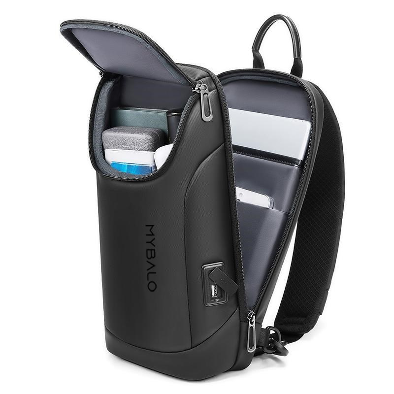 MYBALO Breeze je kompaktný batoh cez rameno, ideálny na voľný čas. Ponúka úložný priestor s objemom 5,5 l, priehradku na tablet do uhlopriečky 9,7", USB a USB-C port na nabíjanie elektronických zariadení kdekoľvek a kedykoľvek, skrytú kapsu na cennosti a praktické vnútorné priehradky. Pohodlné nosenie zabezpečuje polstrovaný popruh a chrbtová časť. Popruh je navyše nastaviteľný a odnímateľný. Batoh je vyrobený z nepremokavého kvalitného materiálu s dlhodobou životnosťou. MYBALO Breeze je skvelou voľbou pre voľný čas. Hodí sa pre pánov aj pre dámy a je veľmi univerzálny.