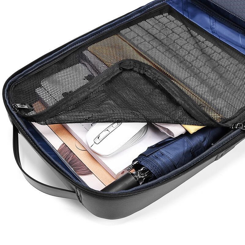 MYBALO Haag je elegantný minimalistický business batoh. Skvele sa hodí do mesta aj do práce. Ponúka úložný priestor s objemom 16 l, vrecko na notebook do uhlopriečky 15,6", tablet do uhlopriečky 9" a USB port na nabíjanie elektronických zariadení kdekoľvek a kedykoľvek. Hlavnú kapsu a kapsu na notebook a tablet je možné otvoriť až o 180 stupňov, čo je veľmi praktické pri ukladaní aj hľadaní vecí. Pre ešte väčšiu prehľadnosť môžete využiť dostatok vnútorných priehradiek a prednú kapsu. Vďaka kvalitnému polstrovaniu je nosenie veľmi pohodlné. Ak s batohom cestujete, môžete využiť praktický držiak na kufor. Batoh je vyrobený z nepremokavého kvalitného materiálu s dlhoročnou životnosťou. Chráni tak všetky vaše veci pred vplyvmi počasia a vydrží vám naozaj dlho. Businessový batoh MYBALO Haag je skvelou voľbou do práce, do mesta, na pracovné cesty aj na voľný čas.