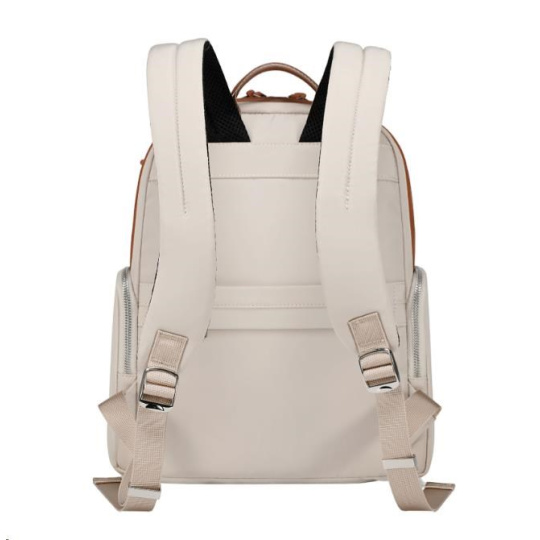 Batoh je dostupný vo dvoch farebných variantoch: béžové s hnedými detailami a čierne, univerzálny k rôznemu oblečeniu.