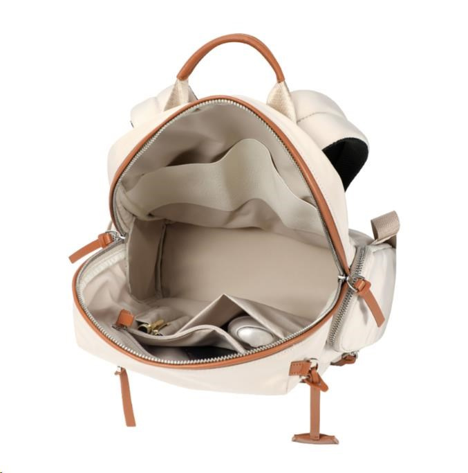 Batoh je dostupný vo dvoch farebných variantoch: béžové s hnedými detailami a čierne, univerzálny k rôznemu oblečeniu.