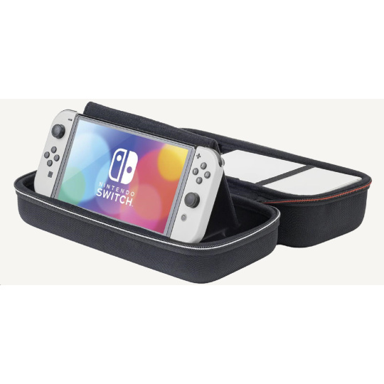 Toto väčšie prepravné puzdro od spoločnosti Nacon oceníte, ak budete chcieť bezpečne a pohodlne prenášať svoju hernú konzolu Nintendo Switch 2 vrátane jej základného príslušenstva. Puzdro pojme nielen samotnú konzolu, ale podľa potreby aj dokovaciu stanicu, nový ovládač Pro Controller alebo držiak Joy-Con 2 Charging Grip. Zároveň ponúka tiež samostatnú priehradku pre napájací adaptér s káblom a prepojovací HDMI kábel. Nastaviteľný stojan v hornej časti puzdra, pri hraní umožňujúci pohodlnejšie sledovanie diania na obrazovke, ochráni počas prepravy ako obrazovku, tak aj analógové páčky konzoly a na jeho vnútornej strane navyše nájdete dvanásť kapsičiek na uloženie herných kariet. Súčasťou balenia sú aj dve menšie plastové puzdrá na microSD karty a čistiaci handričku s logom Nintendo Switch 2. Puzdro je kompatibilné tiež s konzolami Switch a Switch – OLED Model, vrátane ich príslušenstva.