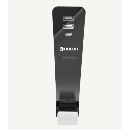 Nabíjajte svoj bezdrôtový herný ovládač DualSense alebo DualSense Edge s pomocou tohto nabíjacieho doku od spoločnosti Nacon. Dok sa pripája k USB-C portom na prednej strane konzoly PlayStation 5 Slim a dokáže plne nabiť ovládač počas troch hodín. Potom, čo si nabitý ovládač vezmete z doku späť, môžete dok priložiť ku konzole, aby ste naň nevedomky nezavadili. Dok navyše ponúka dva porty USB-A a jeden port USB-C, ku ktorým môžete v prípade potreby pripojiť ďalšie zariadenia.