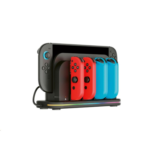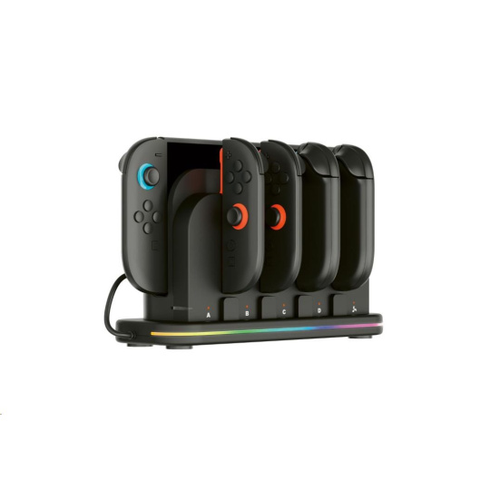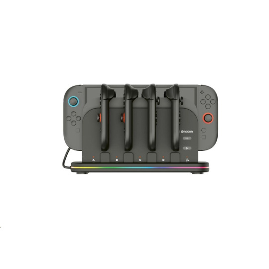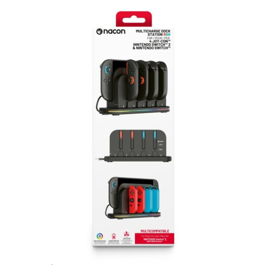 Tato nabíjacía dokovacia stanica od spoločnosti Nacon príde vhod všetkým majiteľom novej hernej konzoly Nintendo Switch 2 aj pôvodnej hernej konzoly Nintendo Switch, ktorí často potrebujú nabíjať väčší počet ovládačov Joy-Con. Stanica umožňuje nabíjať súčasne až štyri ovládače, ako aj samotnú konzolu, jejmuž prehriatiu zabraňuje zabudovaný chladený ventilátor. O stave nabíjania každého z ovládačov informuje príslušný LED ukazovateľ, zatiaľ čo RGB pruh s výberom z deviatich rôznych efektov dodáva stanici štýlový, moderný vzhľad. Pretože napájací USB-C kábel nie je súčasťou balenia, slúži na pripojenie stanice do elektrickej siete originálne napájacie príslušenstvo dodávané s konzolou.