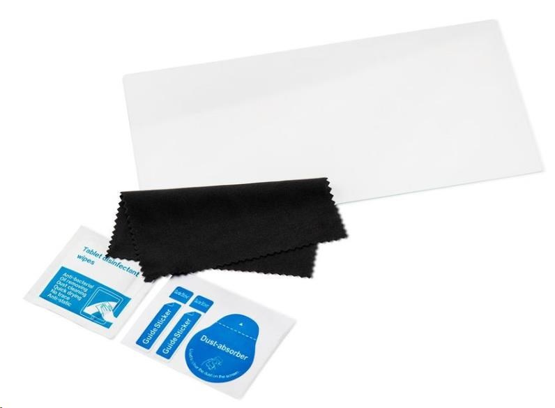 - Súčasť balenia je čistiaci handrička, dva dezinfekčné vlhčené utierky, dve nálepky na odstránenie prachu a nálepky uľahčujúce aplikáciu skla.