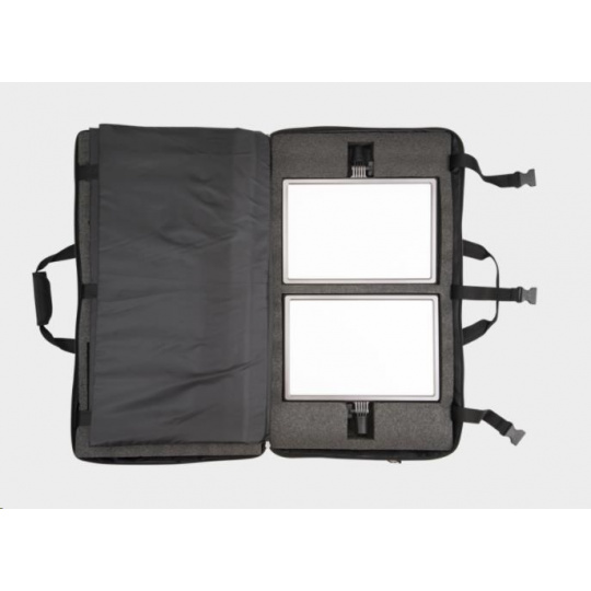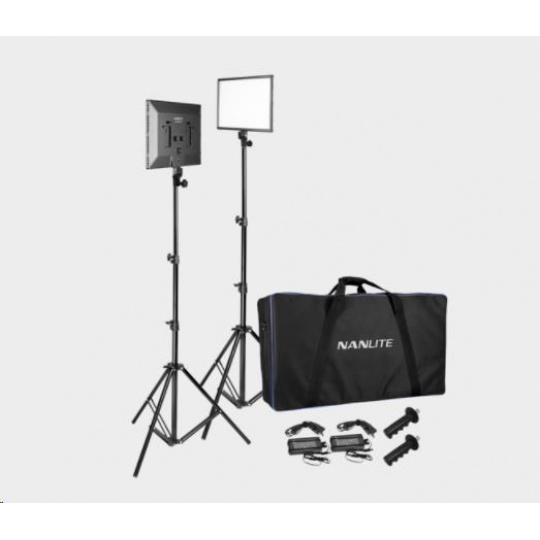 Sada 2 LED svetelných panelov Nanlite LumiPad 25. Sada obsahuje aj 2 statívy, 2 rukoväte a puzdro na prenášanie.