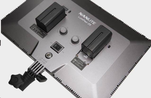 Nanlite LumiPad 25 je ideálny na vytváranie mäkkého, rovnomerne rozptýleného svetla v štúdiu aj v teréne. Môžete si vybrať z niekoľkých možností napájania vrátane napájacieho adaptéra alebo kompatibilných batérií Sony NP-F (predávajú sa samostatne). Panel má tiež integrovaný indikátor stavu batérie.