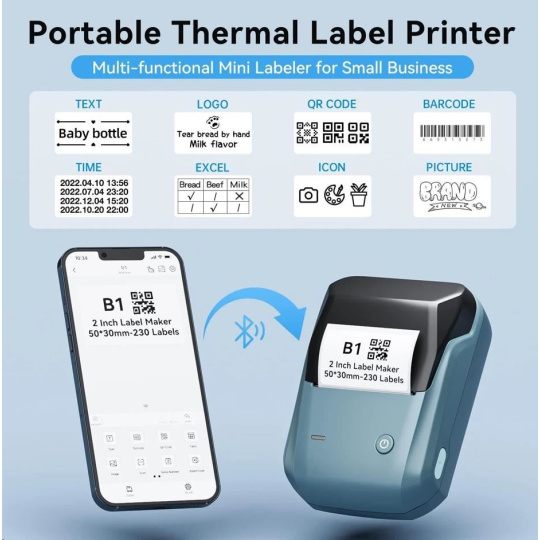 Zabudnite na zdĺhavé a komplikované procesy tlače etikiet. S NIIMBOT B1 je tlač etikiet hračkou vďaka jej bezdrôtovej technológii a vynikajúcim funkciám. Táto prenosná tlačiareň etikiet je vybavená dobíjateľnou lítiovou batériou, ktorá vám umožní tlačiť kdekoľvek a kedykoľvek budete potrebovať po dobu 4 až 5 hodín. S NIIMBOT B1 môžete jednoducho označovať veci v kancelárii, škole, obchode a na mnoho ďalších miestach. Jej kompatibilita s PC a systémami Android a iOS znamená, že môžete tlačiť priamo zo svojho smartfónu alebo tabletu, čo zabezpečuje maximálne pohodlie a efektivitu.