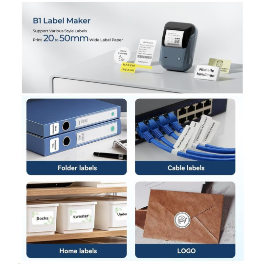 NIIMBOT B1 je tlačiareň etikiet, ktorá kombinuje výkon, pohodlie a kvalitu. S jej jednoduchou obsluhou a vynikajúcimi funkciami vás prekvapí, aké rýchle a jednoduché je vytváranie profesionálnych etikiet.