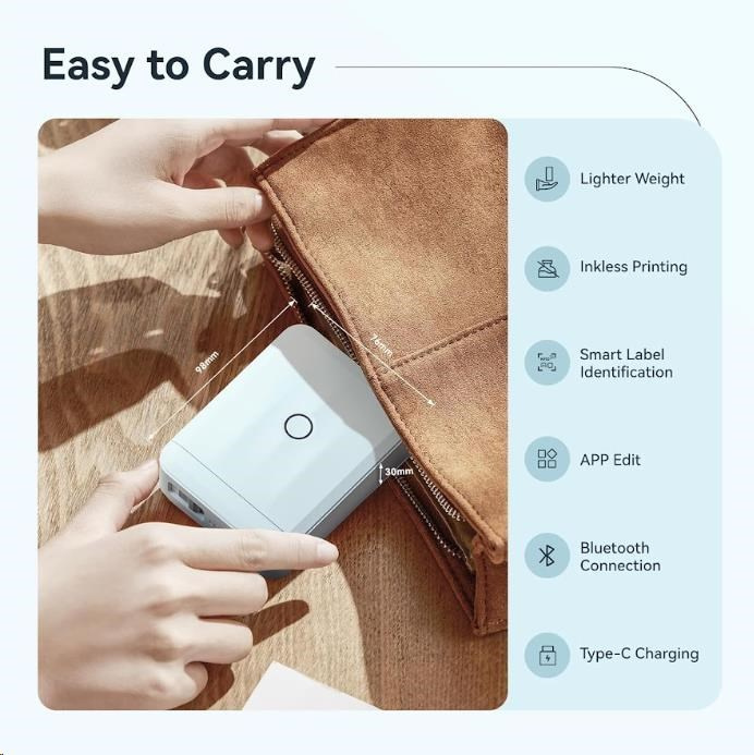 Zabudnite na zdĺhavé a komplikované procesy tlače etikiet. S inovovanou tlačiarňou štítkov NIIMBOT D110-M je tlač etikiet hračka. Vďaka Bluetooth pripojeniu a lítiovému akumulátoru môžete polepovať bez obmedzení až 4 hodiny. S NIIMBOT D110-M môžete jednoducho označovať veci v kancelárii, škole, obchode a na mnoho ďalších miestach. Jej kompatibilita so systémami Android a iOS znamená, že môžete tlačiť priamo zo svojho smartphonu alebo tabletu, čo zaisťuje maximálne pohodlie a efektivitu.