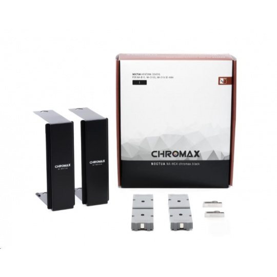 Kryty chladiča NA-HC4 chromax.black sú doplnkovým príslušenstvom pre oceňované chladiče CPU NH-D15, NH-D15S a NH-D15 SE-AM4 od spoločnosti Noctua. Vyrobené z vysoko kvalitného hliníka s čiernym práškovým nástrekom, umožňujú používateľom dodať chladiču elegantný, nenápadný vzhľad, ktorý sa skvele hodí do celočiernych zostáv a dobre ladí s mnohými ďalšími obľúbenými farebnými schémami. Vďaka jednoduchej a priamočiarej inštalácii trvá zmena vzhľadu chladiča NH-D15(S) len pár minút a nevyžaduje ani jeho demontáž z procesora. V kombinácii s ventilátormi chromax.black.swap edície NF-A15 vám dva kryty NA-HC4 chromax.black dávajú možnosť zmeniť váš NH-D15(S) na celý čierny výkonný stroj, ktorý vyzerá rovnako skvelo, ako chladí.