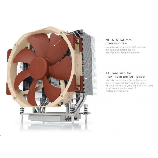 NOCTUA Chladič CPU NH-U14S TR4-SP3, 1x 140mm, sTRX4, sWRX8, TR4, SP3, hnědá/stříbrná
