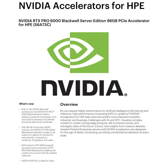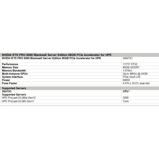 NVIDIA RTX PRO 6000 Blackwell Server Edition 96GB PCIe Accelerator for HPE.