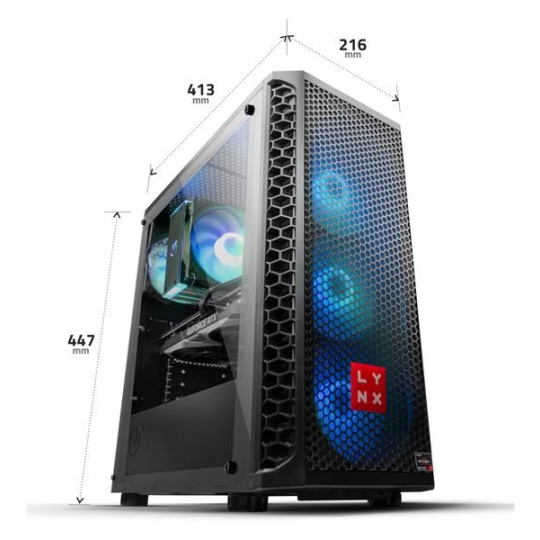 Základom zostavy je doska s čipovou sadou B660 osadená 6jadrovým procesorom Intel i5 12400F, ktorý disponuje technológiou HyperThreading pre plynulejší multitasking, pracujúci na frekvencii 2.5 GHz, alebo až 4.4 GHz s technológiou turbo. Pamäte RAM značky Kingston sú pre zostavy LYNX štandardom, v tejto zostave ide o pamäte s kapacitou 16 GB DDR4 (2x 8 GB). Plynulý obrazový výstup je zabezpečený grafickou kartou NVIDIA GeForce RTX 3060, ktorá disponuje 12GB pamäte GDDR6. V tejto zostave nebrzdí ani úložisko, je tu SSD disk 1 TB M.2 PCIe NVMe pre všetky potrebné dáta a softvér. Dostatčné napájanie zabezpečuje zdroj 550W. Zostava je dodávaná vrátane nového operačného systému Windows 11 Home.
