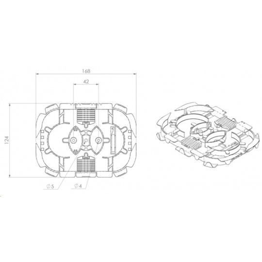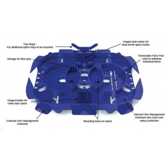 - dva hrebene s celkovou kapacitou 24 chráničov zvarov. (Uloženie a konštrukcia výklopných hrebeňov umožňuje viesť vlákna aj pod nimi