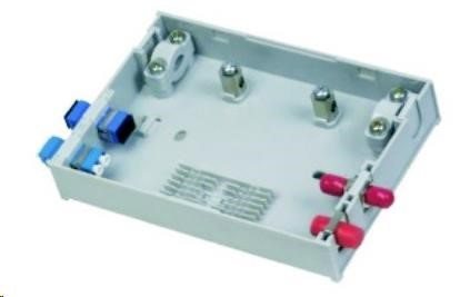 Malý plastový rozvádzač na odbočenie z hlavného vedenia. Umiestnenie 6 svoriek, 1x hlavné vedenie cez kábel, 4 výstupné porty. Výstupné porty môžu byť vybavené simplexnými adaptérmi pre ST, SC, FC a duplexné LC. Obsahuje adaptér pre pigtail káble (6 otvorov, priemer 3 mm). Rozmery: 150x104x27 mm - V cene nie sú zahrnuté optické adaptéry. - Vonkajšie rozmery: 150 x 104 x 27 mm - Vnútorný priestor: pojme zariadenie s rozmermi približne 105 x 77 x 20 mm - Pozície na ochranu zvaru: vhodné pre zvary s priemerom 3 mm - Priemer otvoru pre pigtail: 3 mm, vhodné pre štandardné prepojovacie káble..
