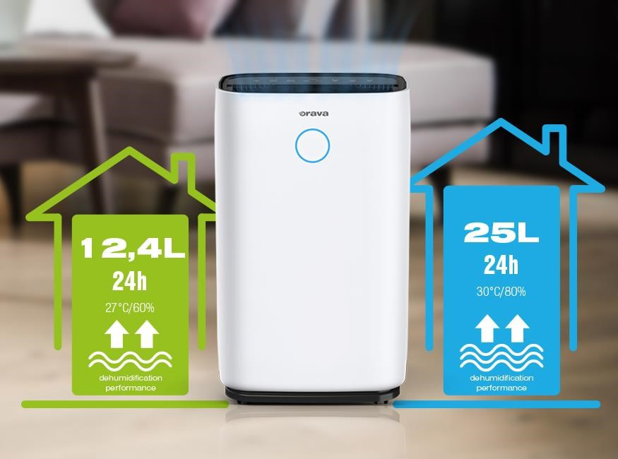 S rastúcou vlhkosťou sa v interiéri množia pleseň, huby a baktérie, ktoré poškozujú naše zdravie aj vzhľad domu. Účinný odvlhčovač vzduchu Orava Dehum-1 odsaje zo vzduchu prebytočnú vlhkosť a čiastočne vyčistí vzduch v miestnosti od prachu, koure, baktérií a peľu. Spoľahlivo sa postará o optimálnu vlhkosť v byte, dome aj v chatke.