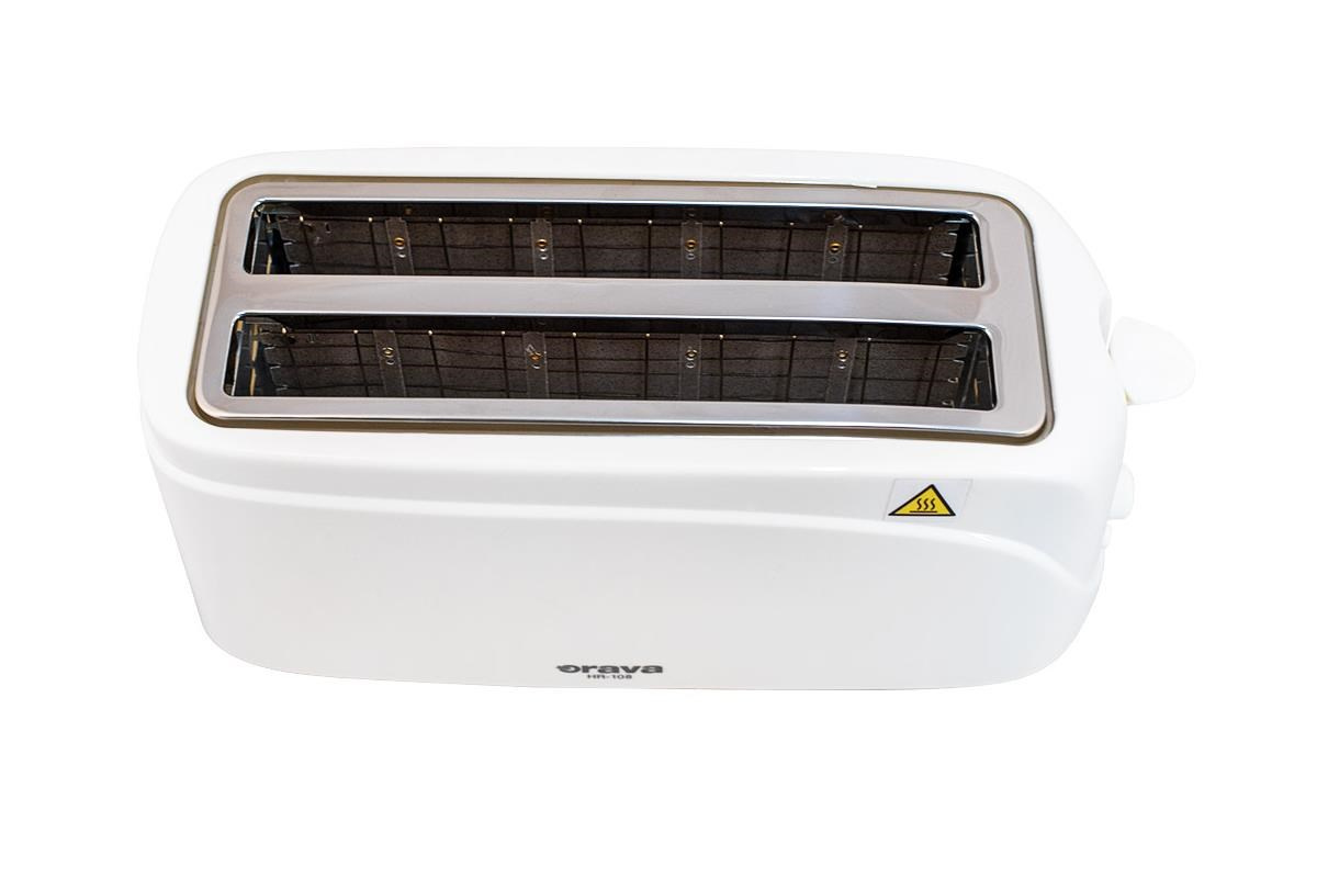 Orava HR-108 je topinkovač do každej rodiny. Má priestor na opekanie až 4 toasty naraz a poskytuje až 6 teplotných stupňov na výber. Disponuje úctyhodným výkonom 1200 W a funkciou Stop, ktorá je užitočná, ak si myslíte, že sú toasty už hotové - predčasne tak môžete topinkovač vypnúť stlačením tlačidla. Navyše má vo svojej výbave šikovný zásobník na drobky, ktorý je možné kedykoľvek vybrať a vyčistiť kvôli ľahšej údržbe.