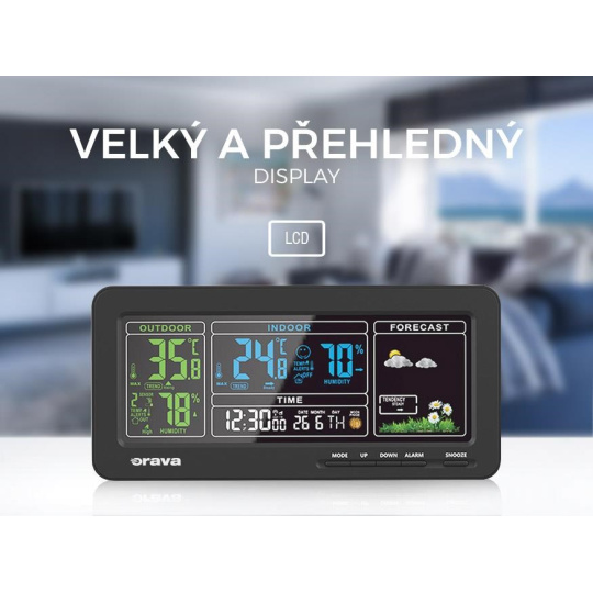 Meteostanica Orava Meteo-1 vás spoľahlivo informuje o tom, aká je teplota v interiéri aj za oknami vášho domova. Na prehľadnom LCD displeji si okrem teploty a vlhkosti prečítate informácie o čase, dátume a predpovedi počasia.