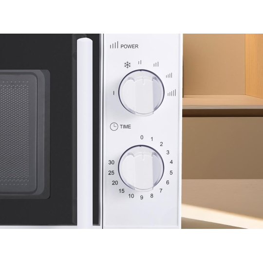 Táto mikrovlnná rúra disponuje až šiestimi režimami nastavenia ohrevu alebo rozmrazovania. Jej ovládanie je naozaj jednoduché a to prostredníctvom otočných ovládačov. Prvým si nastavíte silu ohrevu a druhým čas, ktorý požadujete na ohrev alebo rozmrazovanie vášho pokrmu. Maximálny čas ohrevu je 30 minút.