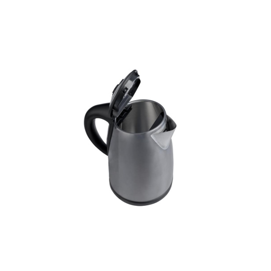 Elektrická varná konvica - šedá. Varná nádoba z ušľachtilej nerezovej ocele. Objem 1,7l. Otváranie vrchného víka konvice stlačením tlačidla. Varná nádoba na odnímateľnom 360° otočnom podstavci. Priemyselná teleso prekryté doskou z ušľachtilej ocele. Stupnica hladiny vody. Ochrana pred ohrevom bez vody. Auto vypnutie. Vyberateľné filtračné sitko na vodu. Sieťová šnúra odkladateľná v podstavci. Napájanie 230V 50 Hz, 2000 W