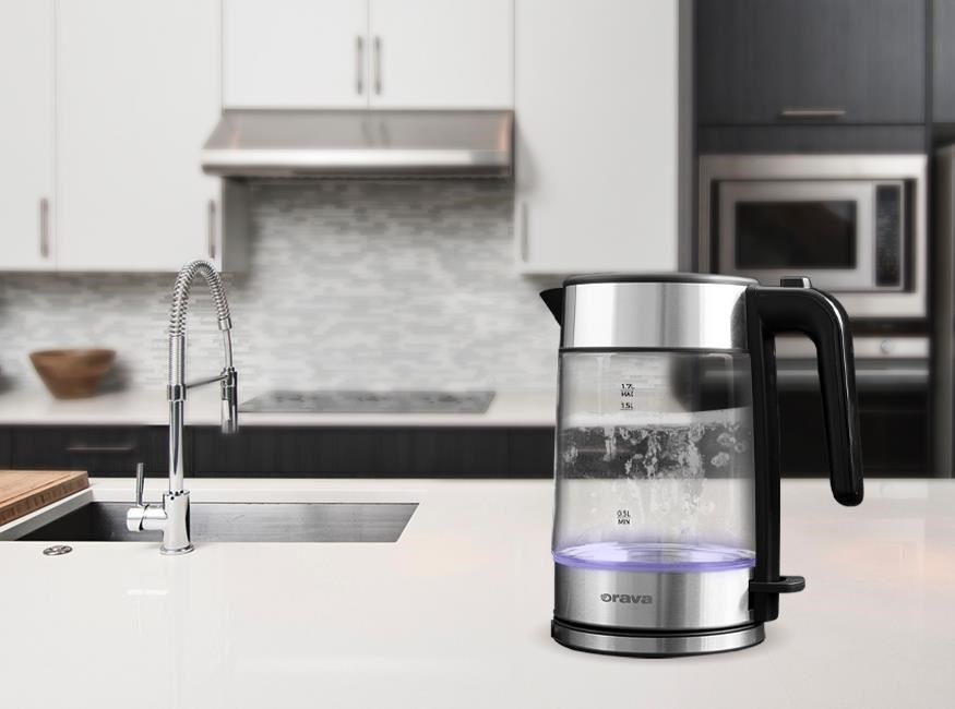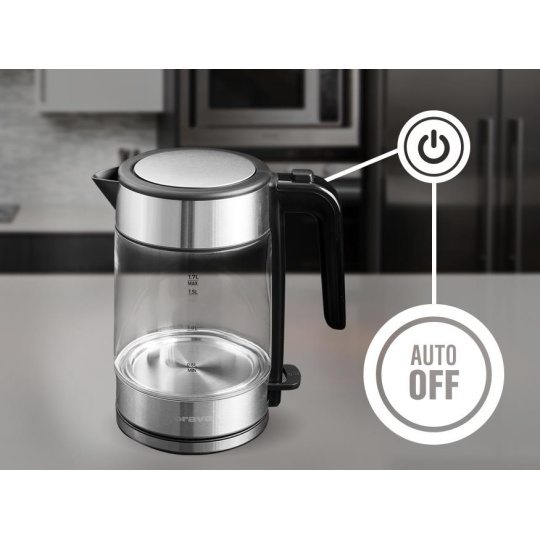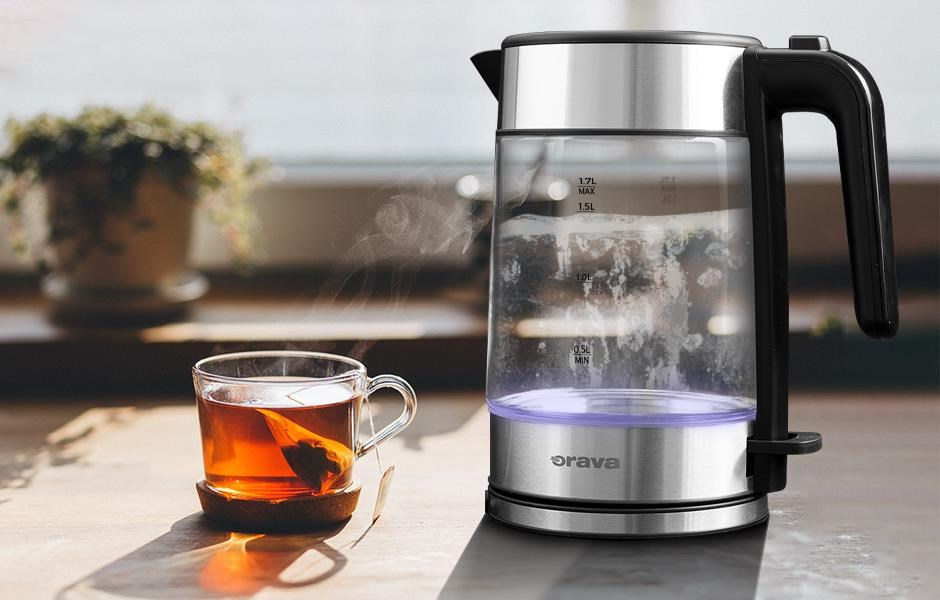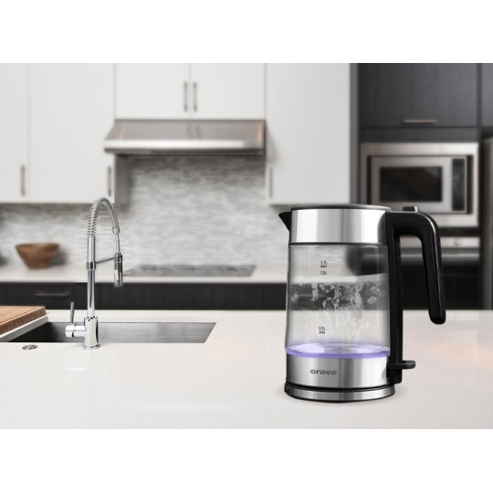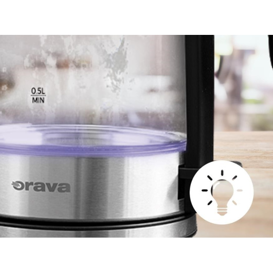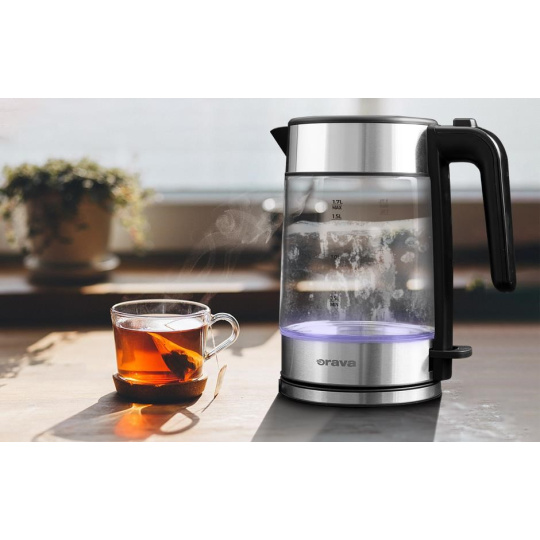 Orava VK-4018 rychlovarná konvice, 2200 W, LED osvětlení, 1.7 l, automatické vypnutí, nerez-skleněný design