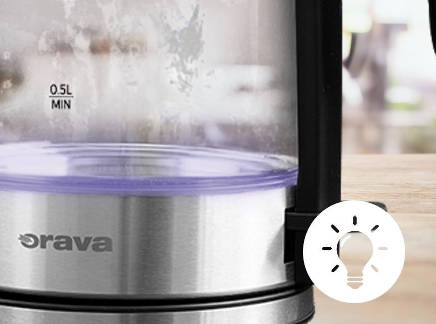 Praktickou funkciou konvica je LED podsvietenie: zatiaľ čo sa voda v konvici ohrieva, konvica farebne svieti, po uvarení vody svetlo zhasne. Aj z diaľky je tak jasné, či je voda pripravená na váš horúci nápoj.