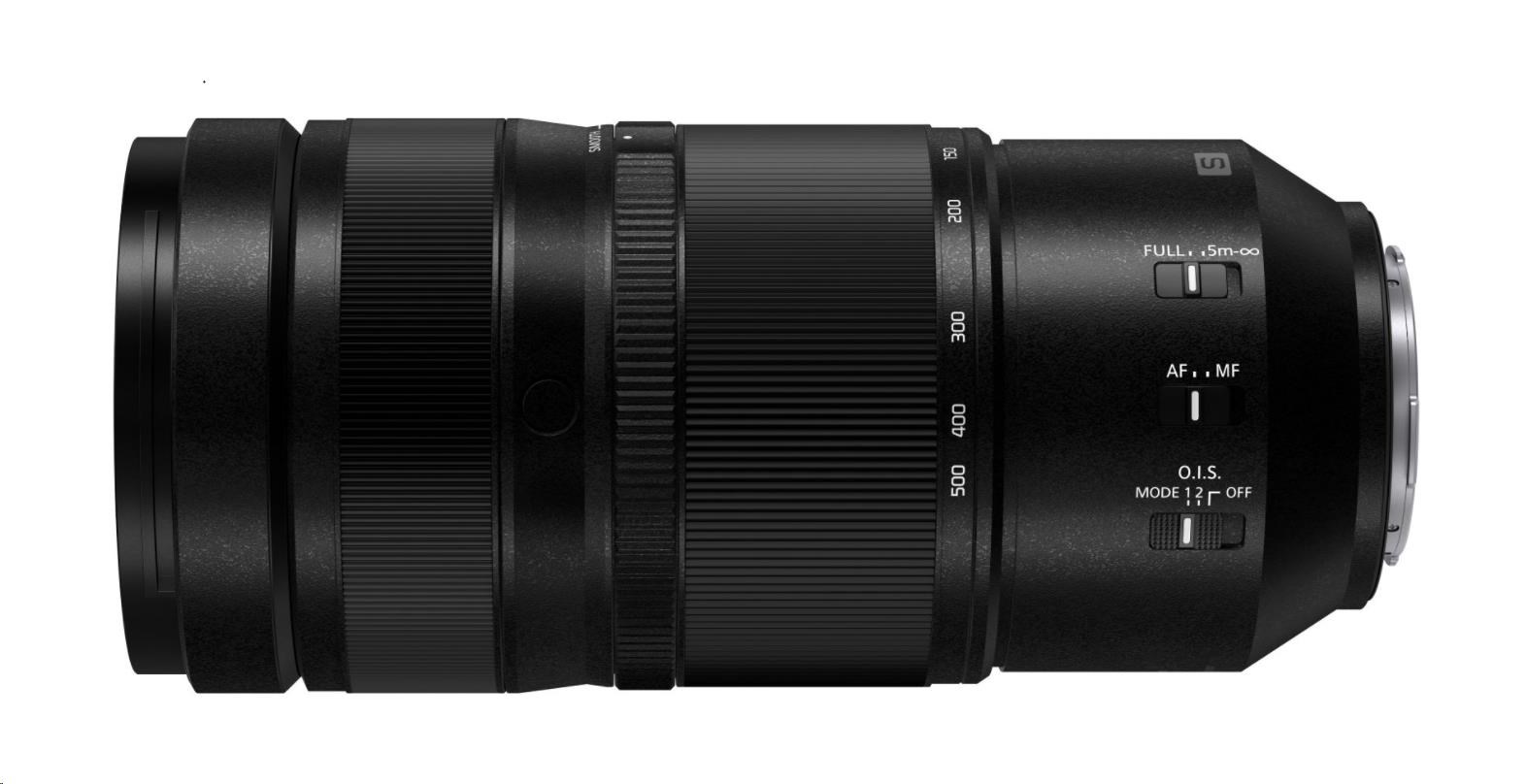 Ultrakompaktný teleobjektív Lumix S pre foto a video vo rozlíšení 8K, ohnisková vzdialenosť 100–500 mm s možnosťou predĺženia až na 1000 mm (s 1.4×/2.0× telekonvertorom), optická stabilizácia obrazu O.I.S.