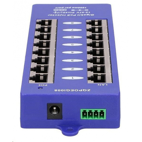 Pasívny POE injektor 8x 1Gb/s, tienený, svorkovnica