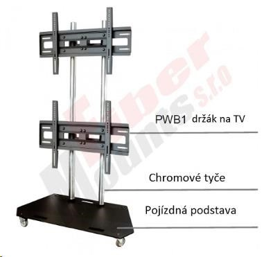 Technické údaje: •maximálne zaťaženie stojanu: 140kg •maximálna hmotnosť 1 televízora: 60kg •výška stojanu 210cm •nastaviteľná výška TV •na TV a monitory 22" - 60" podľa zvoleného držiaku TV •pojazdný, možnosť zabezpečenia proti pojazdu •farba: podstavec čierny, tyče chróm •profesionálny výrobok - najvyššia kvalita •možnosť nastavenia sklonu oboch TV +/-18 st. •vedenie káblovej kabeláže vo vnútri stojanu •nosnosť podstavca 30kg - možnosť umiestnenia PC, notebooku, DVD atď. •rozmery podstavca: 1170x500mm (ŠxH) •atest TUV •záruka 10 rokov