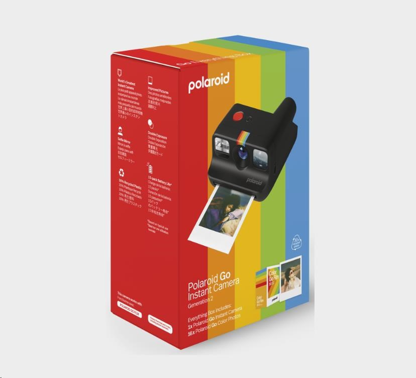 Je naozaj malý (najmenší fotoaparát na svete), ale má veľký tvorivý potenciál, zrkadlo na selfie, samospúšť, dvojitú expozíciu a možno ho spárovať s vlastnými malými farebnými filtrami. To všetko v klasickom dizajne a teraz vyrobené z 30 % recyklovaných materiálov. Súčasťou balenia je dvojbalenie filmov Polaroid Color Go pre 16 farebných instantných fotografií s bielymi rámečkami.