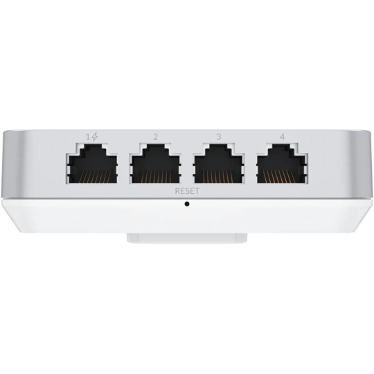 Okrem gigabitového portu na zadnej strane má na spodnej strane aj ďalšie 4 gigabitové porty, kde je možné použiť funkciu PoE passthough na prvom z týchto portov.