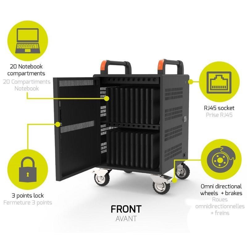 - Kapacita: až 20 notebookov do veľkosti 15,6'' a 1x RACK U19"