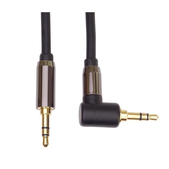 PremiumCord HQ stĺlený kábel stereo Jack 3.5mm - Jack 3.5mm zahnutý 90° 5m