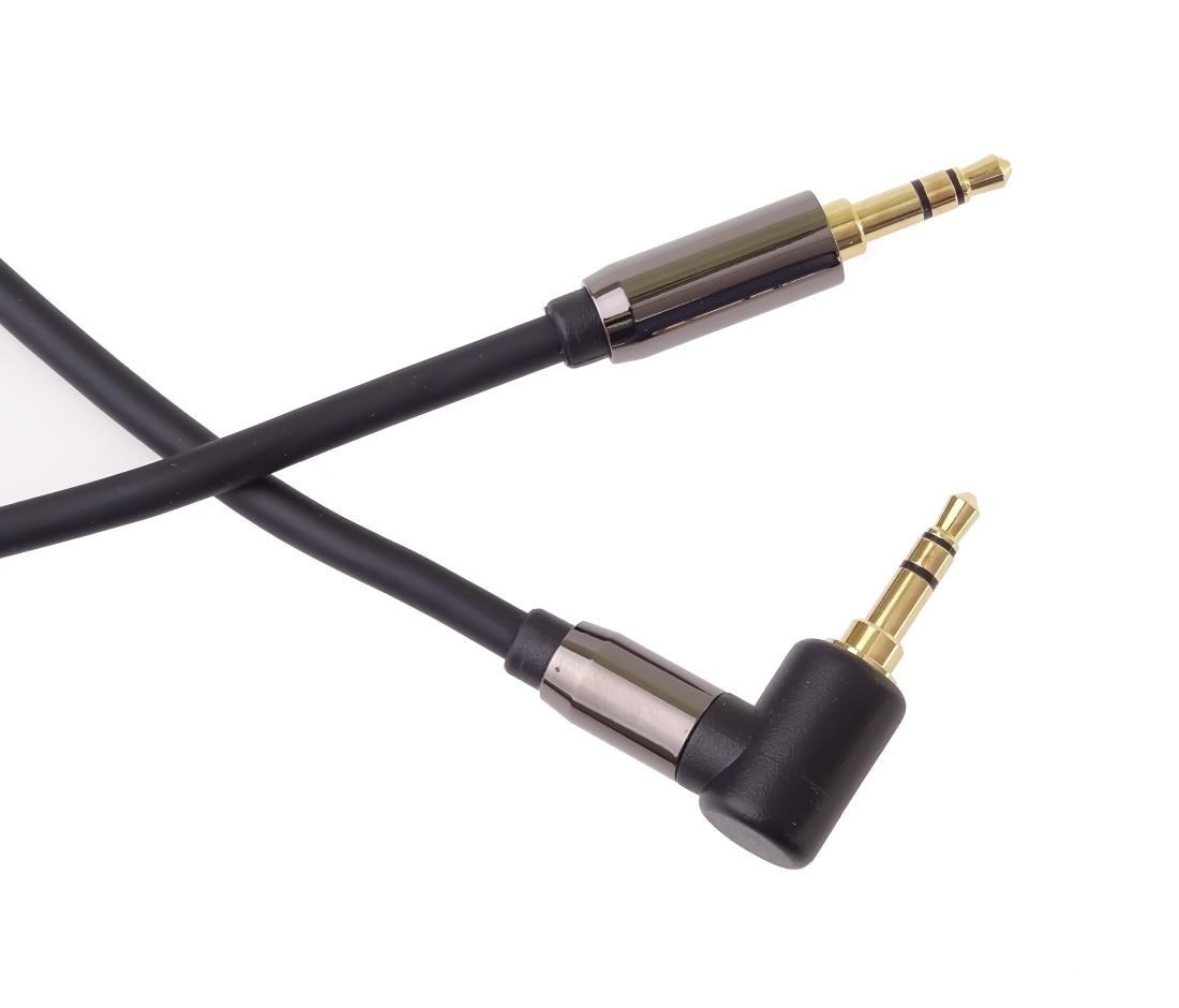 PremiumCord HQ stĺlený kábel stereo Jack 3.5mm - Jack 3.5mm zahnutý 90° 5m