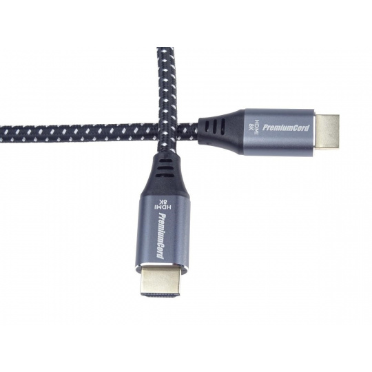Kábel HDMI PREMIUMCORD 2.1 vysokorýchlostný + ethernetový kábel 8K@60Hz, pozlátené konektory, 0,5 m