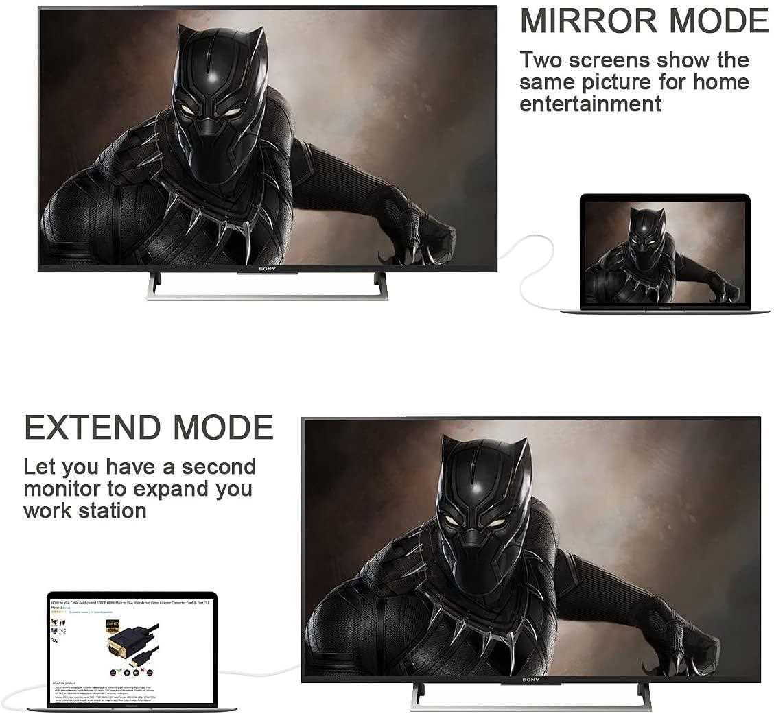 - Prevodník integrovaný v kábli umožňuje prepojiť zariadenie s výstupom HDMI so staršími monitorami alebo TV s VGA konektorom. Podporuje rozlíšenie FULL HD 1080P ( 1920x1080@60Hz ), najväčšia výhoda je integrácia prevodníka do kábla, nie je potrebné dodatočné napájanie.