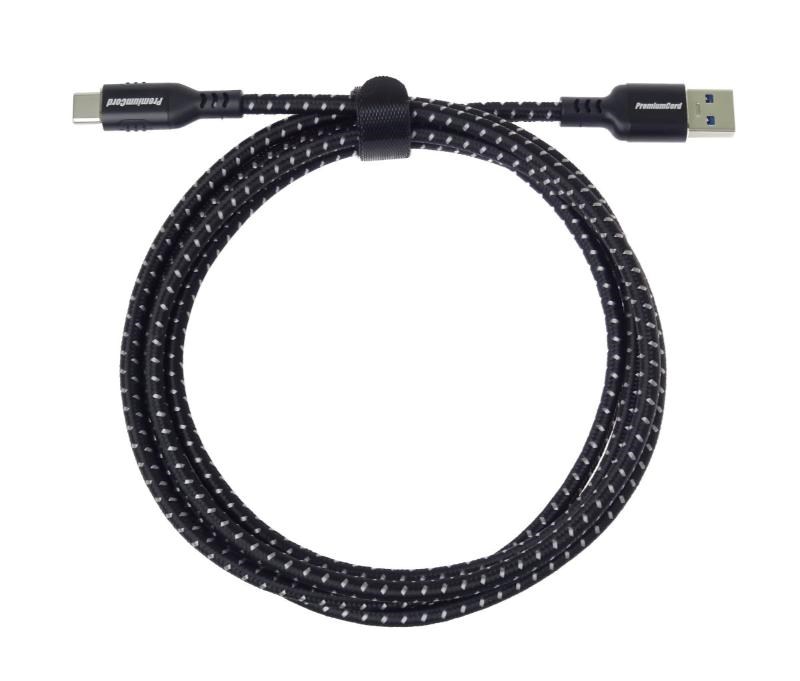 PremiumCord kábel USB-C - USB 3.0 A (USB 3.2 generácia 1, 3A, 5Gbit/s) 0,5m bavlnený opletenie a kovové hliníkové konektory