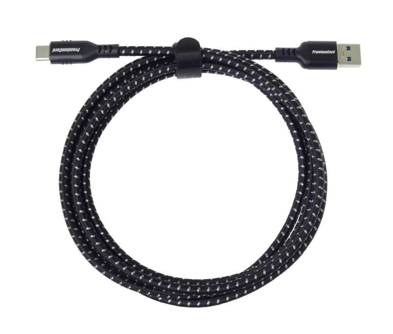 PremiumCord kábel USB-C - USB 3.0 A (USB 3.2 generácia 1, 3A, 5Gbit/s) 1,5m bavlnený opletk a kovové hliníkové konektory