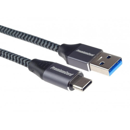 PremiumCord USB-C na USB 3.0 A (USB 3.1 generácia 1, 3A, 5Gbit/s) 0,5 m bavlnené opletenie a kovové hliníkové konektory